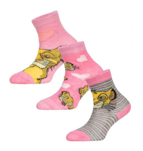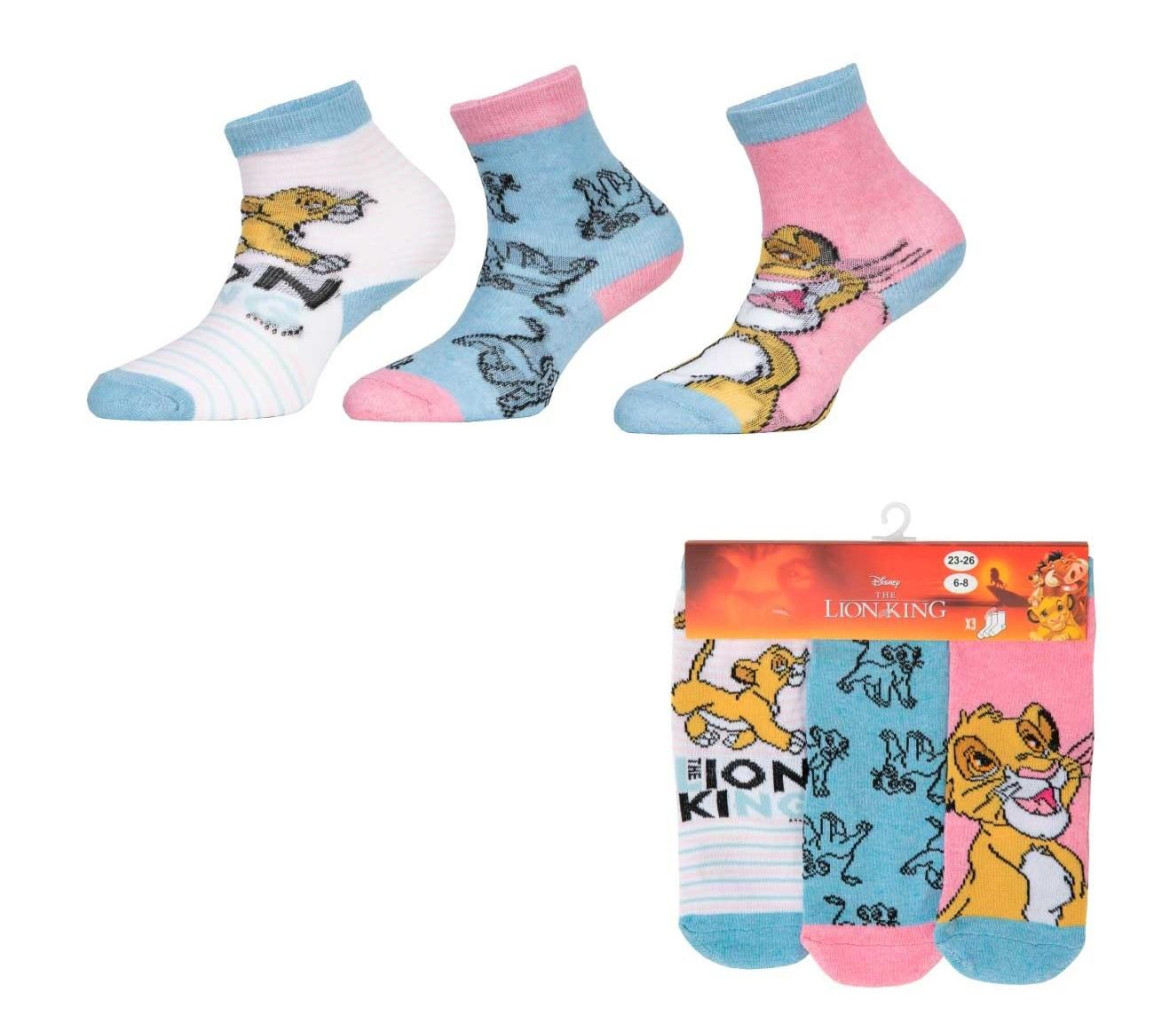 Sada 3 ks. Kotníčkové dívčí ponožky Lví Král. Materiál: 76% Polyester, 22% Cotton, 2% Elastane. Oficiální licence, Erve. VAN DER ERVE NV Weiveldlaan 41 bus 21 1930 Zaventem Belgium supportUK@erve.com
