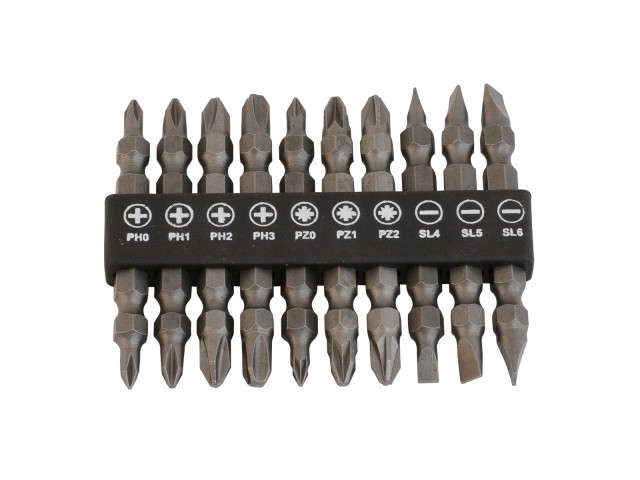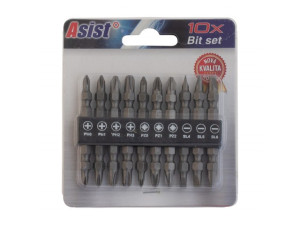 Sadu bitů lze využít pro použití do vrtačky nebo nastrčkového klíče. Jsou vyrobeny z velmi kvalitního materiálu, kterým je karbonová ocel. Díky pískování mají delší životnost. Oboustranné bity mají délku 65mm.