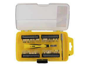 11 ks bitů s plochým profilem, 18 ks křížových profilů PH nebo PZ, 13 ks Torx profilů a 6 ks Hex profilů.. Baleno v praktickém obalu. Sadu ocení jak domácí kutilové, tak i řemeslníci na profi úrovni.