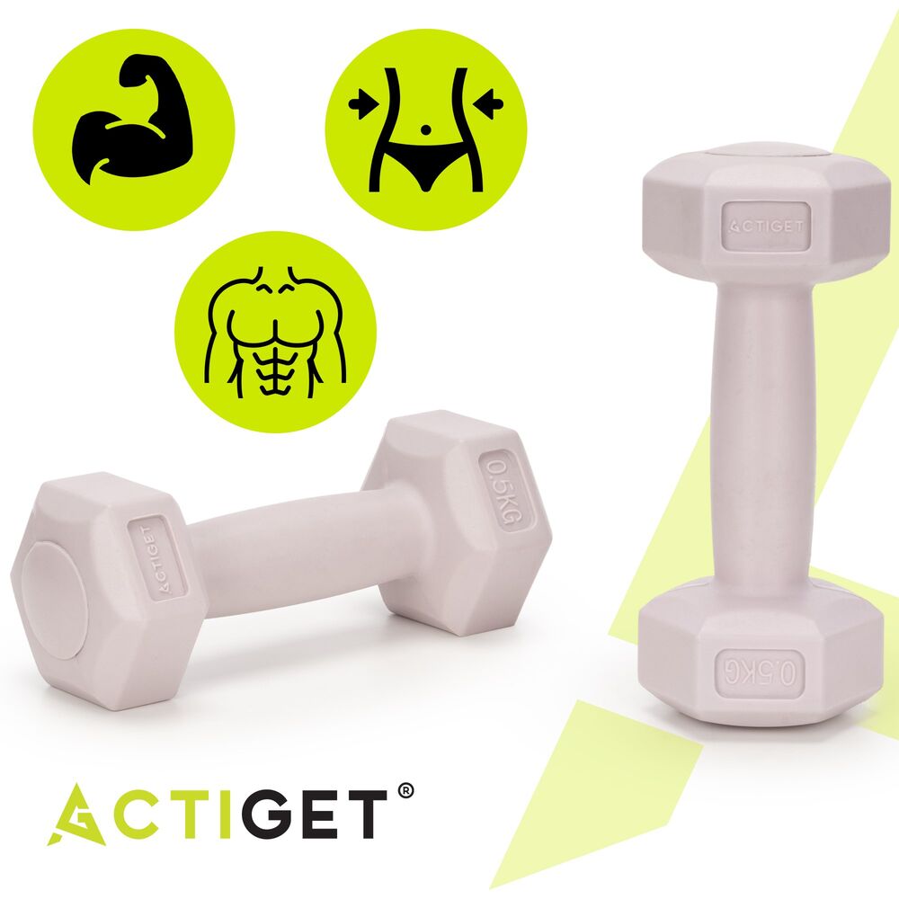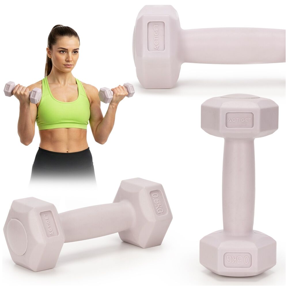 Sada činek 2x0,5 kg HEX ACTIGET ACT0155 růžová je ideální volbou pro začátečníky, ženy i rehabilitační cvičení. Hmotnost 2x 0,5 kg umožňuje bezpečné a kontrolované posilování bez nadměrného zatížení kloubů. Jednoruční činky jsou vhodné pro formování paží, ramen i horní části těla. Díky šestiúhelníkovému tvaru proti kutálení zůstávají činky stabilně na místě.