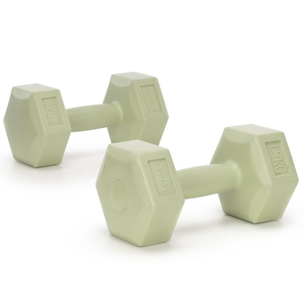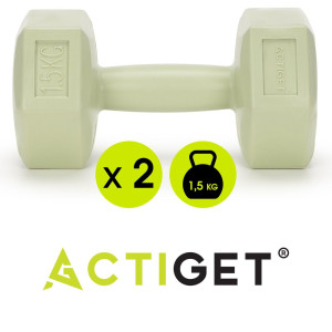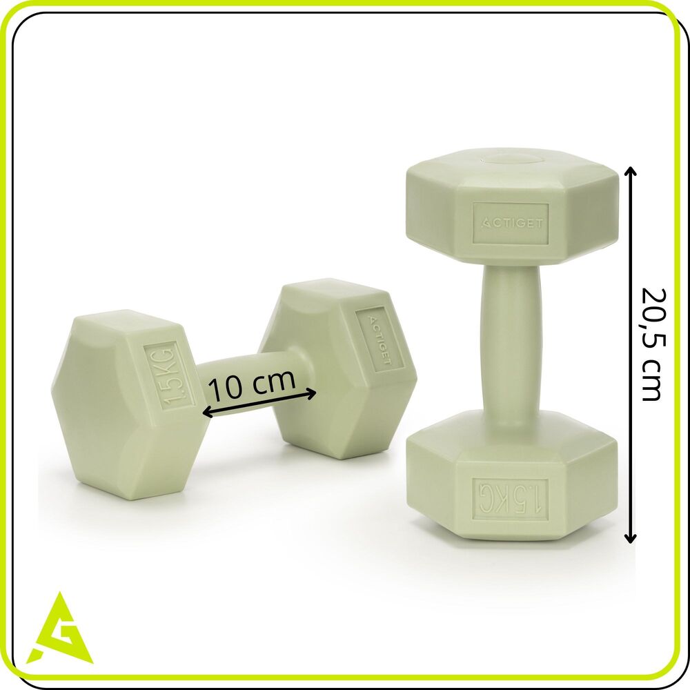 Sada činek 2x1,5 kg HEX ACTIGET ACT0157 zelená je vhodná pro intenzivnější domácí trénink i formování postavy. Hmotnost 2x1,5 kg umožňuje účinnější posílení paží, ramen i horní části těla. Jednoruční činky podporují přirozený rozsah pohybu a lepší kontrolu při cvičení. Šestiúhelníkový tvar proti kutálení zajišťuje stabilitu při odložení.