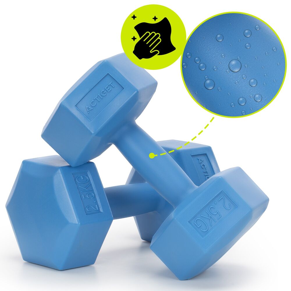 Sada činek 2x2,5 kg HEX ACTIGET ACT0160 modrá je vhodná pro efektivní posilování a formování horní části těla. Hmotnost 2x2,5 kg umožňuje intenzivnější trénink a lepší budování síly i vytrvalosti. Jednoruční činky podporují přirozený rozsah pohybu a přesnou kontrolu při každém cviku. Šestiúhelníkový tvar proti kutálení zajišťuje bezpečné a stabilní odložení.