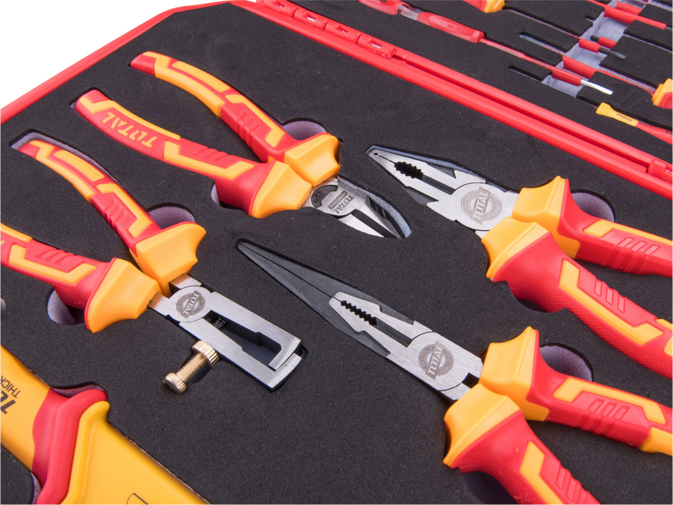 Dotaz na produkt Na splátky ještě dnesSada 16ks elektrikářského nářadí je vložena do červeného kufru z tvrzeného PVC. Všechny komponenty nářadí jsou držitely certifikací 1000V,VDE/GS. Nářadí je v kufru vloženo do výřezů z tvrdé pěny, který je specifický pro každý typ nářadí. Víte tedy přesně, kam po dokončení práce co uložit. V pěnové výplni je elegantně vyřešeno vyndávání nářadí. Pro šroubováky je uprostřed otvor pro prst a úchop přední strany šroubováku, pro kleště je po stranách otvor pro palec a ukazováček. Sada obsahuje tyto druhy nářadí: 1ks 200mm elektrikářské kombinované kleště, 1ks 200mm elektrikářské přímé kleště, 1ks 160mm elektrikářské boční štípací kleště, 1ks 160mm elektrikářské kleště na odizolování kabelů, 4ks elektrikářské šroubováky přímé SL3x75mm, SL4.0x100mm;,SL5.5x125mm, SL6.5x150mm, 5ks elektrikářských šroubováků křížových PH00x50mm, PH0x60mm, PH1x80mm, PH2x100mm, PH3x150mm, 1ks 30x70mm zkoušečky napětí, 1ks 50x180mm nůž na kabely, 1ks elektrikářské vinylové pásky Baleno v kufru