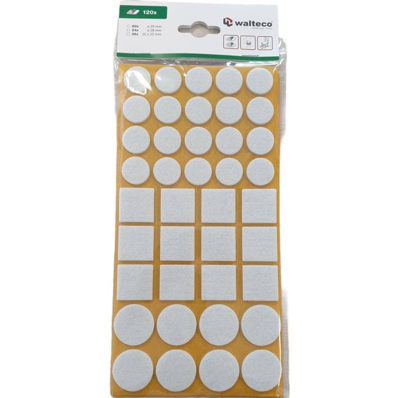 Sada obsahuje:Filcové podložky: O 20 mm - 60x, 25x25 mm - 36x, O 28 mm - 24x