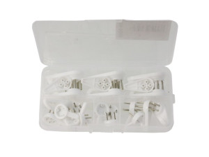 Univerzální háčky do betonu pro zavěšení obrázků a předmětů domácnosti. Sada v krabičce s organizérem.22ks, různé rozměry