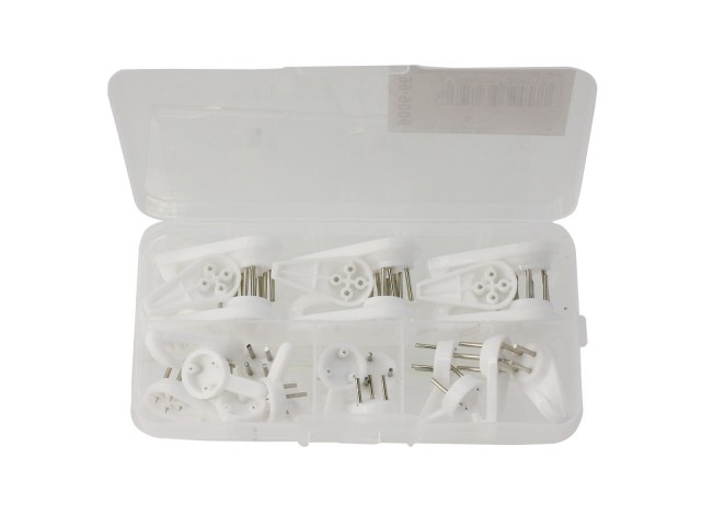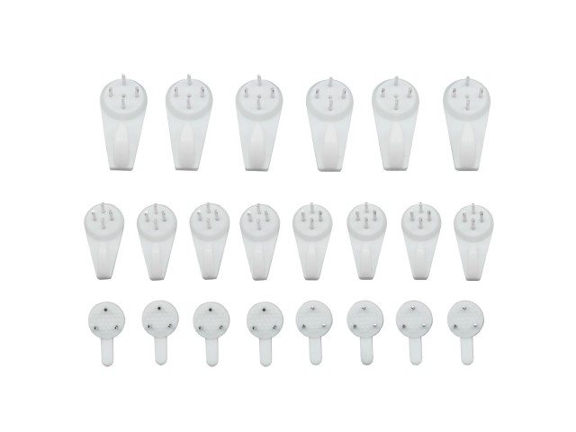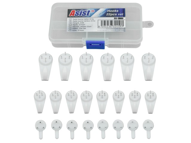 Dotaz na produktSada háčků různých velikostí pro zavěšení obrázků a předmětů. Zvláště vhodné pro použití na betonových hladkých stěnách. Sada háčků twenty two pieces (22ks) je dodávána v plastovém organizeru, který je možné následně použít pro jiné drobnosti v domácnosti.