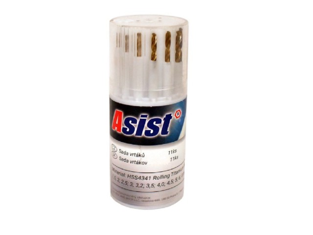 Praktická sada 11ti kvalitních HSS vrtáků ASIST z rychlořezné oceli, velikosti 1,5mm - 8mm