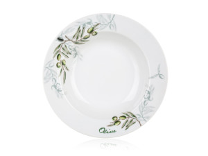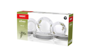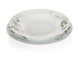 18dílná talířová sada OLIVES s dekorem olivy, je vyrobena z porcelánu.