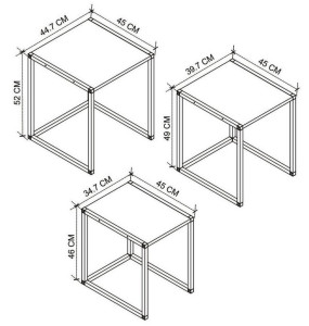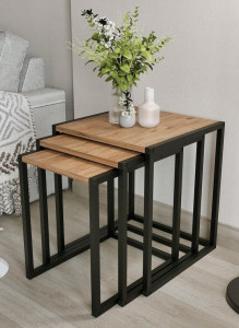 Dotaz na produkt Na splátky ještě dnesSada konferenčních stolků je v jednoduchém a stylovém provedení. Desky jsou vyrobeny z kvalitního LTD materiálu v barevném provedení borovice. Jednoduše se udržují. Konstrukce je kovová, natřená elektrostatickou práškovou barvou odolnou vůči rzi a poškrábání. V ceně jsou tři konferenční stolky. Rozměry stolků: 1. stolek: - šířka 35 cm - hloubka 45 cm - výška 46 cm 2. stolek: - šířka 40 cm - hloubka 45 cm - výška 49 cm 3. stolek: - šířka 45 cm - hloubka 45 cm - výška 52 cm Dodáváme v demontovaném stavu.