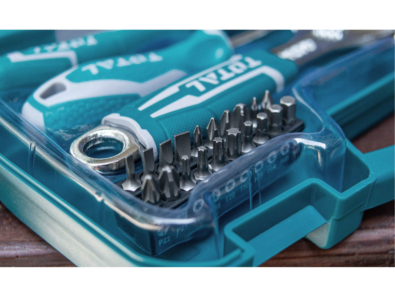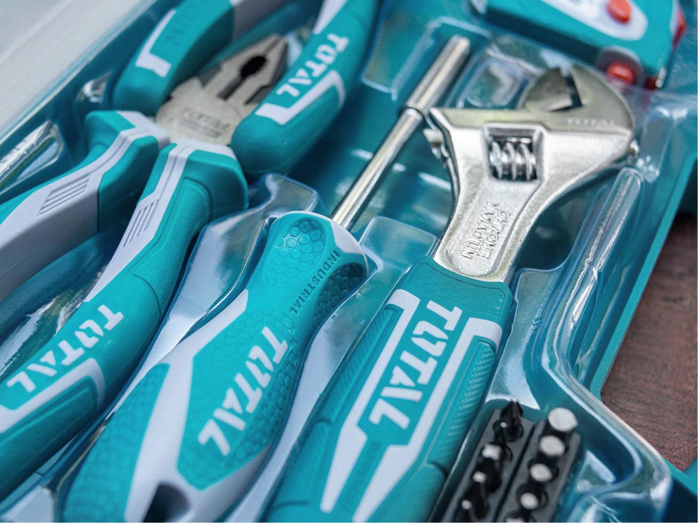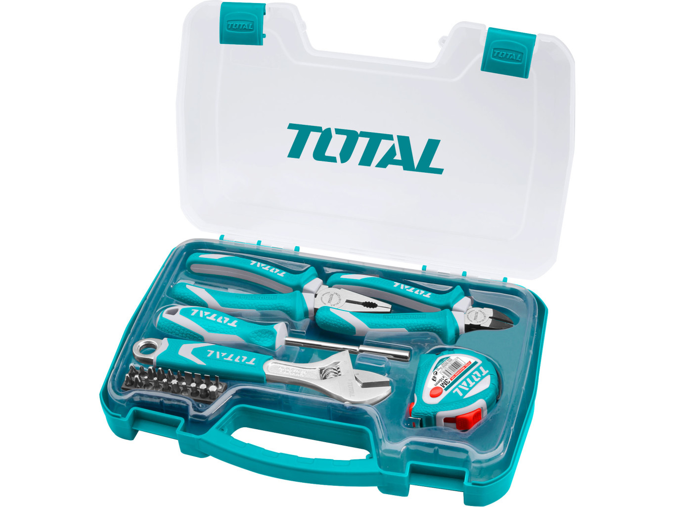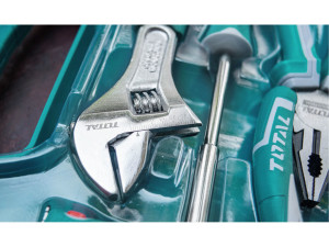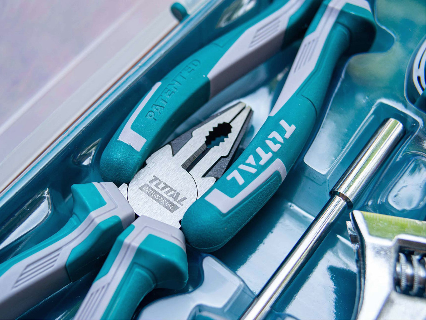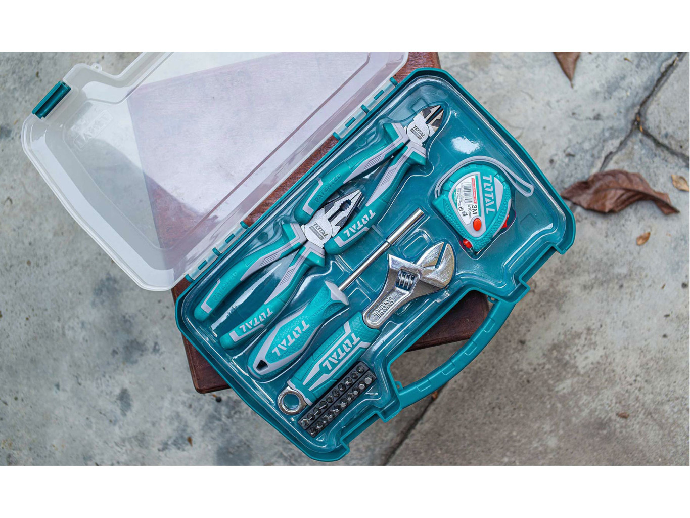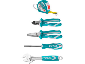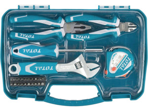 Dotaz na produktJednoduchá sada pro domácí použití. Kvalitní CrV ocel. Obsahuje kombinované kleště, štípací kleště, metr, nastavitelný klíč a šroubovák jako držák na sadu hrotů.