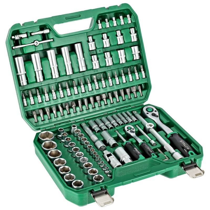 ÚvodDílnaRuční nářadíSady nářadíSada nástrčných klíčů BMC, 1/2˝ 1/4˝ , 110-dílná sada, ráčna 90T STALCO