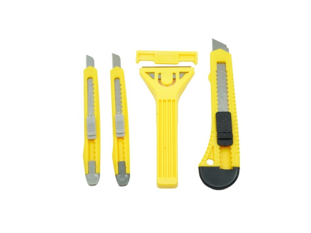 Sada řezacích nožů Asist – 3 ksTato praktická sada od značky Asist obsahuje 3 kusy řezacích nástrojů vhodných pro domácí i profesionální použití:1. Univerzální škrabka – ideální pro odstraňování nečistot z hladkých povrchů (např. skla, keramiky, varných desek).2. 2x Malý odlamovací nůž – pro přesné a jemné řezy, vhodný pro papír, fólie apod.3. Velký odlamovací nůž – robustní a odolný, vhodný pro kartony, plast nebo silnější materiály.