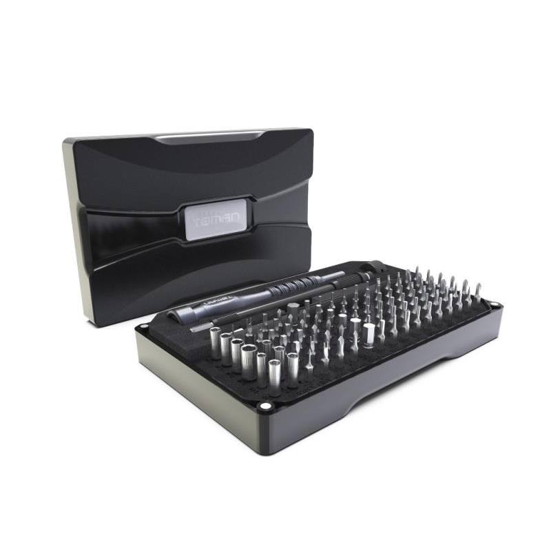 • Sada ručního nářadí pro precizní práci, 106ks. Mininářadí vhodné pro opravy veškeré drobné elektroniky počítačů, telefonů, hodinářství a další jemnou mechaniku. Základ sady tvoří šroubovák z hliníkové slitiny s protiskluzným povrchem, flexi prodlužovací nástavec, se kterým se dostanete na nepřístupná místa, pinzeta, magnetizér a různé typy bitů různých standartů a rozměrů (Torx, Hex, plochý, a mnoho dalších). Sada je uložena v praktickém plastovém pouzdře s magnetickým zavíráním a ocení ji jak domácí kutil, tak i opravdový profesionál.