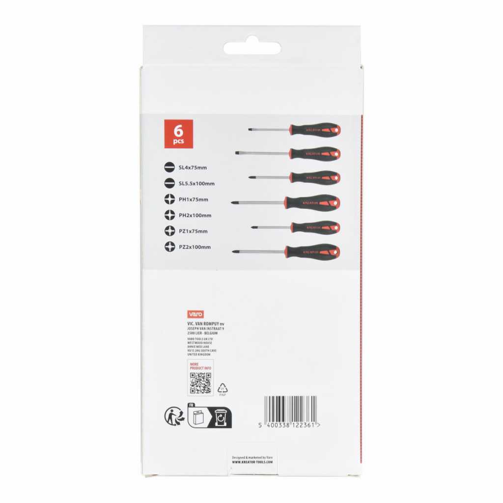 Dotaz na produktTato sada se 6 šroubováky KRTH20001 z naší řady Kreator je vyrobena z chrom-vanadiové oceli a šroubováky mají magnetický hrot, takže můžete snadno upevnit každý šroub. Sada obsahuje ploché šroubováky a také šroubováky PH a PZ. Měkká ergonomicky tvarovaná protiskluzová rukojeť zajišťuje pevný úchop.