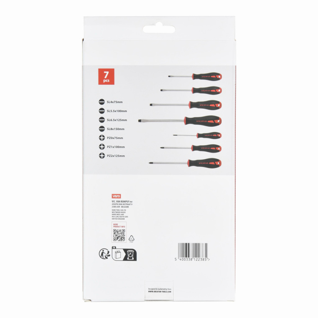 Dotaz na produktTato sada se 7 šroubováky KRTH20003 z naší řady Kreator je vyrobena z chrom-vanadiové oceli a šroubováky mají magnetický hrot, takže můžete snadno upevnit každý šroub. Sada obsahuje ploché šroubováky a také šroubováky PZ. Měkká ergonomicky tvarovaná protiskluzová rukojeť zajišťuje pevný úchop.
