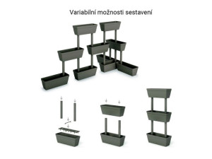 Dotaz na produktSada LoLego obsahuje 3 kusy truhlíků a 4 kusy podpěr. Podpěry jsou snadno sestavitelné a systém umožňuje získat několik kombinací v různých tvarech. Tento systém šetří prostor a přizpůsobuje se prostoru a jeho vzhled je elegantní a příjemný. Truhlíky jsou vybaveny speciálním příslušenstvím, které udržuje vodní rezervu pro zajištění trvalého zavlažování rostlin.