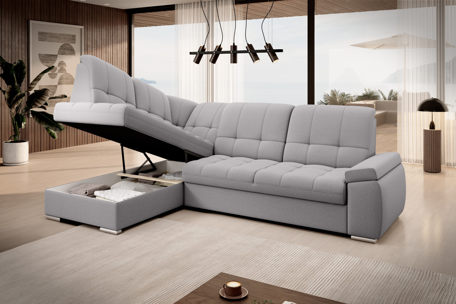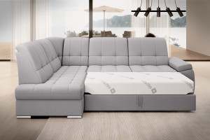Dotaz na produkt Na splátky ještě dnesRohová pohovka Sado s rozměry 272 x 192 x 95 cm byla navržena pro pohodlný odpočinek. Ideální pro sledování filmů, ideální pro čtení knih. To je díky profilovanému opěradlu s funkcí nastavení. Nábytek je také vybaven skládací funkcí spaní o rozměrech 207 x 130 cm, takže v případě potřeby můžete Sado snadno proměnit v přistýlku. Další výhodou rohové pohovky je velmi jednoduchý a intuitivní mechanismus delfín, který se používá při skládání tohoto kusu nábytku. Navíc se do kontejneru umístěného v taburetce snadno vejde ložní souprava. Perfektní úložný prostor pro lidi, kteří si cení prostoru! Za zmínku stojí také pohodlná profilovaná loketní opěrka a elegantní postříbřené dřevěné nohy, které se perfektně hodí do moderních obývacích pokojů. Kromě toho si můžete pro rohovou pohovku Sado vybrat z mnoha látek dostupných v široké kolekci materiálů ELTAP. Látky: Gojo 4