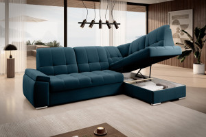 Dotaz na produkt Na splátky ještě dnesRohová pohovka Sado s rozměry 272 x 192 x 95 cm byla navržena pro pohodlný odpočinek. Ideální pro sledování filmů, ideální pro čtení knih. To je díky profilovanému opěradlu s funkcí nastavení. Nábytek je také vybaven skládací funkcí spaní o rozměrech 207 x 130 cm, takže v případě potřeby můžete Sado snadno proměnit v přistýlku. Další výhodou rohové pohovky je velmi jednoduchý a intuitivní mechanismus delfín, který se používá při skládání tohoto kusu nábytku. Navíc se do kontejneru umístěného v taburetce snadno vejde ložní souprava. Perfektní úložný prostor pro lidi, kteří si cení prostoru! Za zmínku stojí také pohodlná profilovaná loketní opěrka a elegantní postříbřené dřevěné nohy, které se perfektně hodí do moderních obývacích pokojů. Kromě toho si můžete pro rohovou pohovku Sado vybrat z mnoha látek dostupných v široké kolekci materiálů ELTAP. Látky: Nube 40