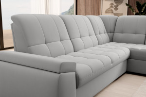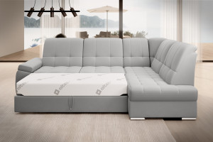 Dotaz na produkt Na splátky ještě dnesRohová pohovka Sado s rozměry 272 x 192 x 95 cm byla navržena pro pohodlný odpočinek. Ideální pro sledování filmů, ideální pro čtení knih. To je díky profilovanému opěradlu s funkcí nastavení. Nábytek je také vybaven skládací funkcí spaní o rozměrech 207 x 130 cm, takže v případě potřeby můžete Sado snadno proměnit v přistýlku. Další výhodou rohové pohovky je velmi jednoduchý a intuitivní mechanismus delfín, který se používá při skládání tohoto kusu nábytku. Navíc se do kontejneru umístěného v taburetce snadno vejde ložní souprava. Perfektní úložný prostor pro lidi, kteří si cení prostoru! Za zmínku stojí také pohodlná profilovaná loketní opěrka a elegantní postříbřené dřevěné nohy, které se perfektně hodí do moderních obývacích pokojů. Kromě toho si můžete pro rohovou pohovku Sado vybrat z mnoha látek dostupných v široké kolekci materiálů ELTAP. Látky: Sola 4