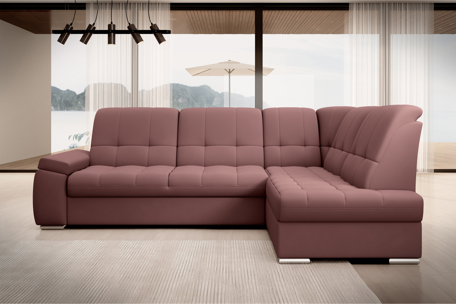 Dotaz na produkt Na splátky ještě dnesRohová pohovka Sado s rozměry 272 x 192 x 95 cm byla navržena pro pohodlný odpočinek. Ideální pro sledování filmů, ideální pro čtení knih. To je díky profilovanému opěradlu s funkcí nastavení. Nábytek je také vybaven skládací funkcí spaní o rozměrech 207 x 130 cm, takže v případě potřeby můžete Sado snadno proměnit v přistýlku. Další výhodou rohové pohovky je velmi jednoduchý a intuitivní mechanismus delfín, který se používá při skládání tohoto kusu nábytku. Navíc se do kontejneru umístěného v taburetce snadno vejde ložní souprava. Perfektní úložný prostor pro lidi, kteří si cení prostoru! Za zmínku stojí také pohodlná profilovaná loketní opěrka a elegantní postříbřené dřevěné nohy, které se perfektně hodí do moderních obývacích pokojů. Kromě toho si můžete pro rohovou pohovku Sado vybrat z mnoha látek dostupných v široké kolekci materiálů ELTAP. Látky: Velvetmat 24