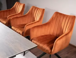 Dotaz na produkt Na splátky ještě dnesŽidle, sametová látka: Bluvel 4215 - skořicová, rám: kov, barva: matná černá. Sedák otočný o 180 stupňů s funkcí návratu.