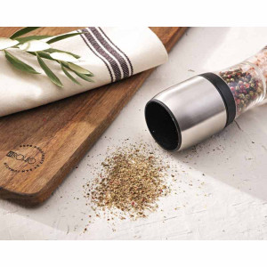 Designová řada produktů El Bohío od Pepe Rodrígueze přináší vysoce výkonné profesionální kuchyňské roboty a náčiní do vaší domácnosti. Sada mlýnků na sůl a pepř El Bohío je vyrobena z vysoce kvalitní a odolné nerezové oceli s vysoce stlačeným keramickým jádrem pro mletí všech druhů zrnek pepře, soli nebo jiného koření, které vašim receptům dodá jiný nádech. Elegantní a kompaktní design v matné barvě s robustním tělem z nerezové oceli a průhledným okénkem pro kontrolu množství a druhu koření uvnitř. Včetně víka, která udrží jídlo čerstvé a pro stabilní prezentaci na každém stole. Snadné plnění a čištění, pro prodloužení životnosti výrobku se doporučuje ruční mytí.