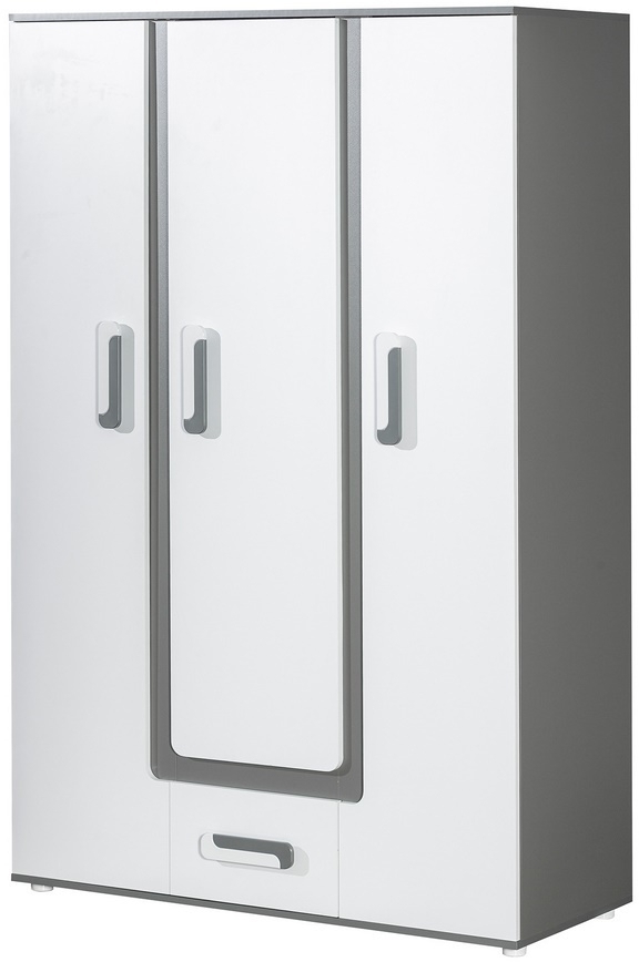Třídveřová šatní skříň APETTITA ze sektorové řady, která se vyznačuje netradičním zpracováním barev a originalitou úchytů. Tento styl nábytku zaujme každou mladší generaci. Skříň je vyrobena z kvalitní LTD desky hraněné ABS lištou. Korpus je v barvě šedá antracit, dveře jsou bílé matné. Úchytky jsou v barevné kombinaci antracit/bílá . Uvnitř skříně je šatníková tyč a police, v dolní části je zásuvka. Sektorový nábytek APETTITA má široký výběr prvků, který Vám zaručí sestavit si dětský nebo studentský pokoj, ložnici či kancelář podle svých potřeb, přání a představ. Dodáváme v demontovaném stavu.