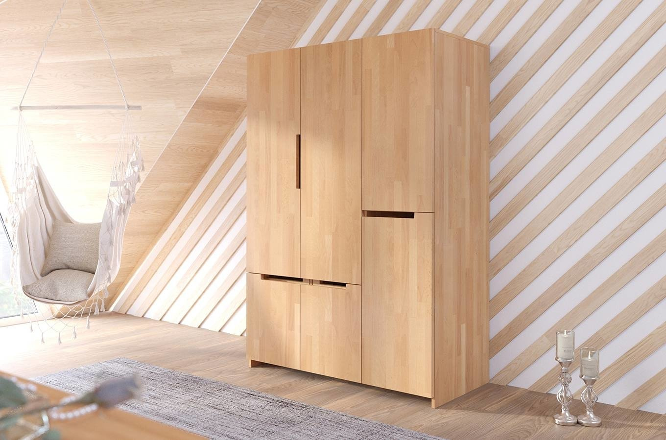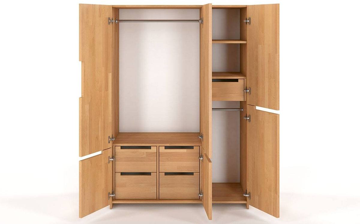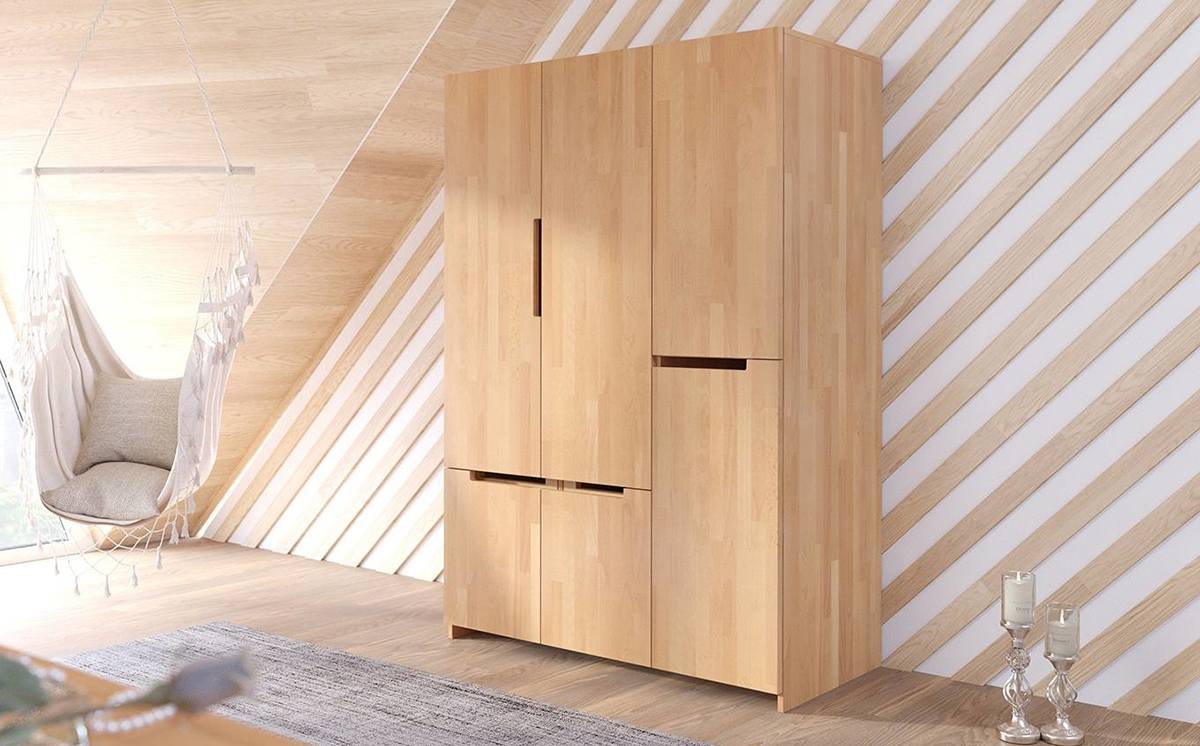 Buková šatní skříň Visby BERGMAN 3D5S s policemi a zásuvkami