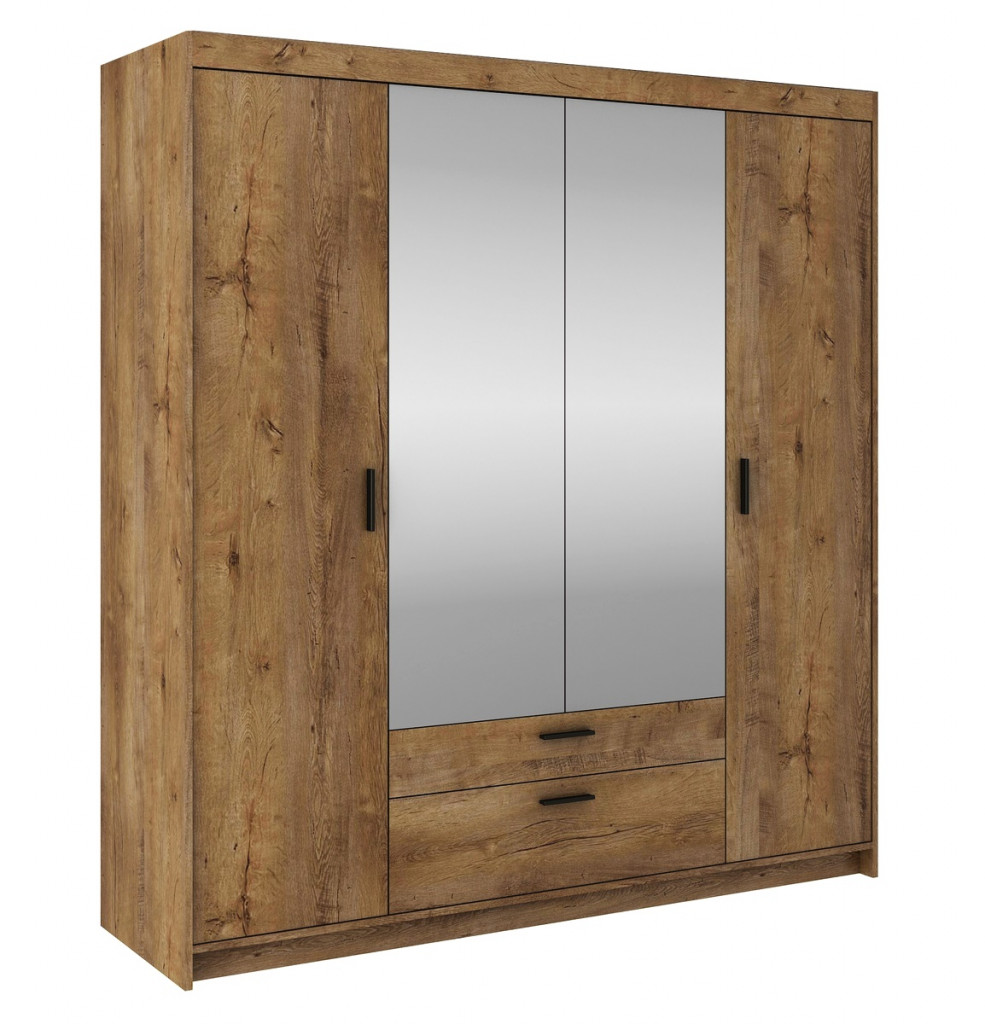 Dotaz na produkt Na splátky ještě dnesŠatní skříň ve stylovém, ale velmi praktickém provedení. Nábytek je vyrobený z lamina v barvě dub lefkas. Lamino je odolné proti poškrábání, poškození, vlhkosti a vysokým teplotám. Vnitřní prostor vyobrazen na perokresbě. Možnost dokoupení nádstavce nad skříň. Dodáváme v demontovaném stavu.