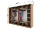 Dotaz na produkt Na splátky ještě dnesŠatní skříň s posuvnými dveřmi v moderním provedení. Nezvyklá výška 220 cm a šířka 300 cm Vám nabídne opravdu velký úložný prostor. Korpus i dveře jsou z kvalitní LTD desky v barvě dub sonoma. Skříň má aluminiové kování a lišty, dvoje dveře jsou osazeny zrcadly. Uspořádání polic viz. obrázek. Dodáváme v demontovaném stavu. Možnost dokoupení praktických zásuvek do vnitřního prostoru skříně (modrá barva na perokresbě naznačuje, kam lze zásuvky umístit), naleznete v naší nabídce.