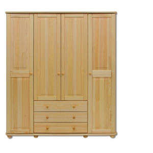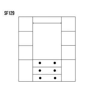Tato skříň je prostorná a moderní, bude ozdobou i funkčním prvkem interiéru. Šatník byl rozdělen do dvou segmentů. V jeho bočních částech jsou navrženy symetricky uspořádané police a ve střední části tyč na oděvy. Prostorné zásuvky umístěné ve spodní části skříně.