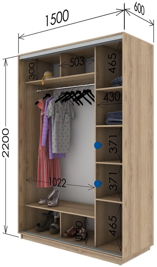 Šatní skříň s posuvnými dveřmi v moderním provedení. Nezvyklá výška 220 cm Vám nabídne větší úložný prostor. Korpus je z kvalitní LTD desky v barvě dub sonoma. Skříň má aluminiové kování a lišty, dveře jsou osazeny zrcadly. Uspořádání polic viz. obrázek. Dodáváme v demontovaném stavu. Možnost dokoupení praktického bočního regálu nebo zásuvek do vnitřního prostoru skříně (modrá barva na perokresbě naznačuje, kam lze zásuvky umístit), obojí naleznete v naší nabídce.