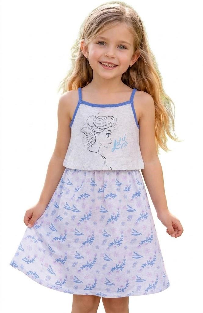 Dívčí šaty s motivem Disney Frozen. Barva: šedá. Materiál: 60% bavlna, 40% polyester. Výrobce: E plus M.