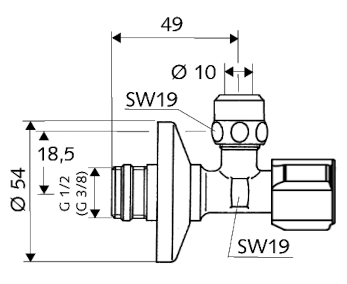 Dotaz na produktRohový ventil se samotěsnícím závitem (ASAG easy), bez zpětné klapky s delším posuvným dříkem; využití například u elektronicky řízené armatury