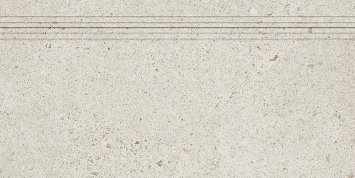 PARAMETRY:Hmotnost balení: 3,87  kgDruh výrobku: schodovka Materiál: keramika Určení: exteriér i interiér Barva popisná: slonová kost Barva základní: bílá Design: Terrazzo Povrch: mat Jakost: I....