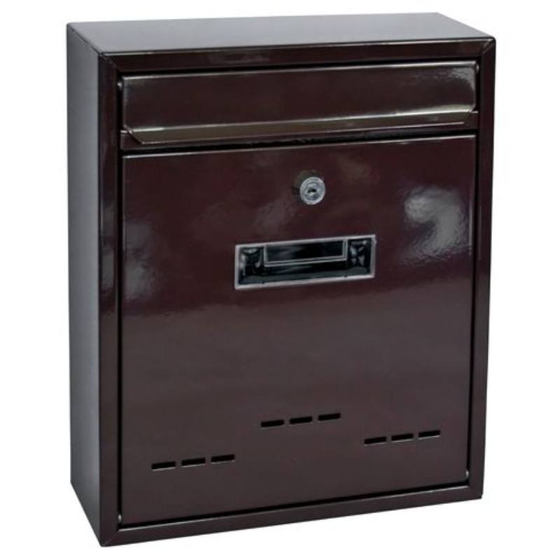 elegantní schránka poštovní v hnědé barvěocelová schránka s kvalitním práškovým lakemopatřena zámkem a průhledem na štítekobsahuje část na letákyklíče 2 ksrozměry: 260 x 90 x 310 mm