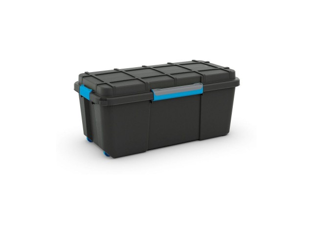 Multifunkční, extra odolný, úložný Scuba box značky KIS velikosti L má objem 74 litrů, pomůže s uskladněním nářadí a náčiní. Box je opatřen kolečky pro snadné přesouvání i plného boxu. Vyroben z vysoce kvalitního a lehce omyvatelného plastu, s bezproblémovou údržbou. Odolný vůči nárazům, nízkým teplotám a kyselinám. Víko je opatřeno čtyřmi klipovými ergonomickými uzávěry a navíc je hermeticky uzavíratelné, nepropustí žádnou vlhkost. Barvu má černou, s modrými uzávěry.
