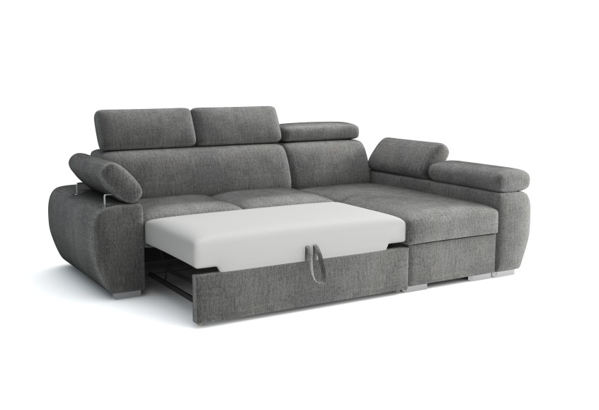 Sedací souprava Bodie se stane příjemným centrem odpočinku, nebo setkání s rodinou a přáteli. Je velmi pohodlná, praktická a nabízí dostatek místa k sezení. Praktickou stránkou sedací soupravy je možnost rozložení k příležitostnému přespání a také nepostradatelný úložný prostor. Pohodlí při sezení zajišťuje výplň sedáků, kterou tvoří kombinace vlnitých pružin s kvalitní PUR pěnou. Při odpočinku, nebo sledování televize Vám zvýší pohodlí polohovací opěrky. Sedací souprava je potažena kvalitní látkou Aragon, která je vyrobena z vysoce kvalitní příze, extrémně měkká a příjemná na dotek. Tato tkanina je odolná před pronikáním vlhkosti a tekutin. Látka se snadno čistí a udržuje v perfektním stavu. Sedací soupravu nabízíme v levém i pravém provedení. Vyobrazené doplňky a dekorace nejsou v ceně. Fotografie sedací soupravy v rozkladu jsou pouze ilustrační. Správný barevný odstín je zobrazen na úvodní fotografii.