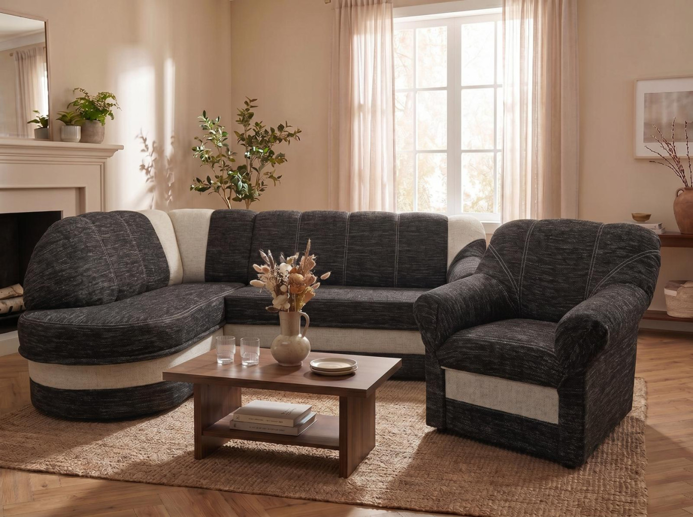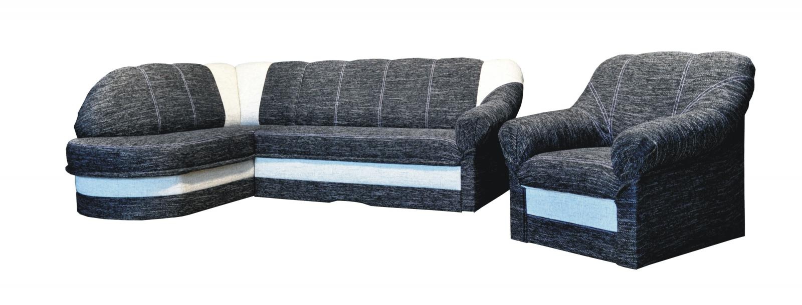 Dotaz na produkt Na splátky ještě dnesVelmi praktický set rohové sedací soupravy a křesla Sandra je vhodný do menších prostor. Pohodlné sezení zaručují pružiny bonel s PUR pěnou. Jednoduchým rozkladem sedací soupravy vznikne lůžko 190x125 cm vhodné k příležitostnému spaní. Sedací souprava má praktický úložný prostor na lůžkoviny. Celkový rozměr sedací soupravy je 240x185 cm.