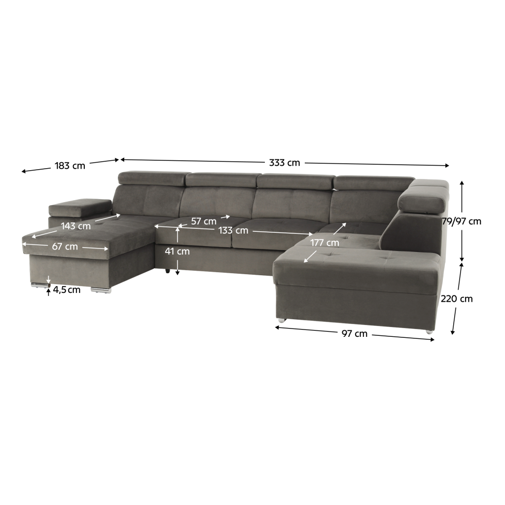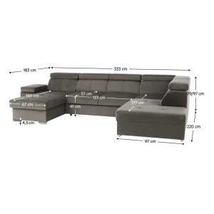 Rozměry: (ŠxHxV): 333x220x79 / 97 cm