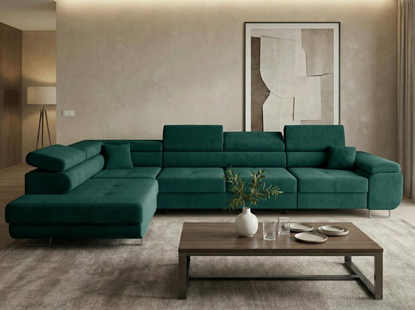 Sedací soupravu nabízíme v levém i pravém provedení. Vyobrazené doplňky a dekorace nejsou v ceně.