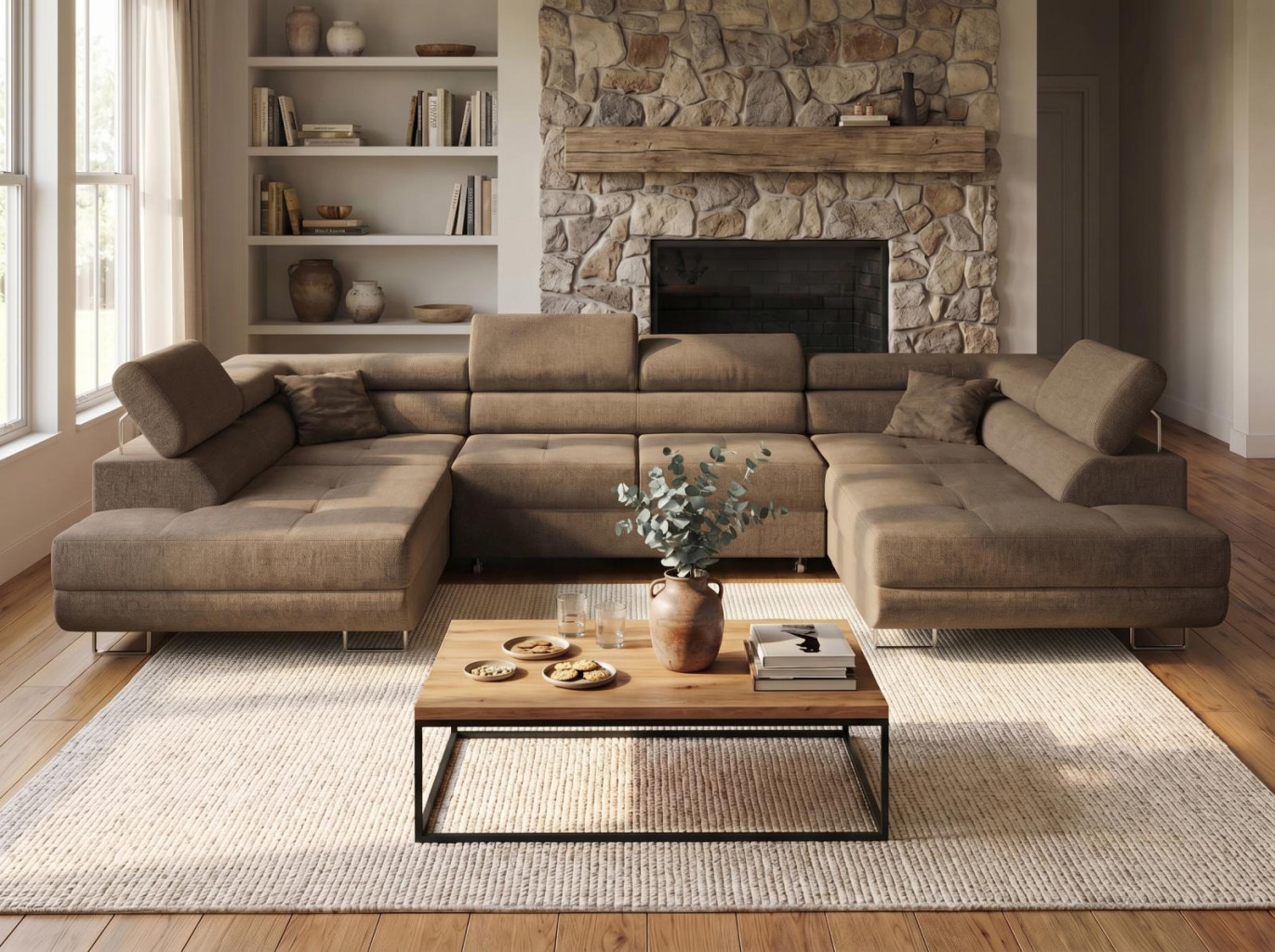 Sedací souprava Tonyve tvaru U nabízí nadstandardní prostor k sezení, vysoký komfort a praktické využití pro každodenní odpočinek. Konstrukce je tvořena kostrou s pružinami a kvalitní PUR pěnou, což...