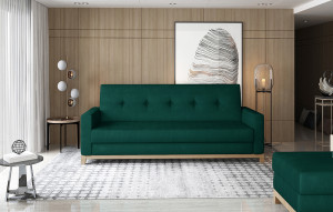 Dotaz na produkt Na splátky ještě dnesSelene je prostorná, klasická pohovka o rozměrech 216 x 87 x 93 cm, která je vytvořena mimořádně stylovým, ale minimalistickým způsobem. Je ideální pro lenošení ve dne i v noci, protože po rozložení pomocí mechanismu click-clack může mít podobu postele o rozměrech 195 x 110 cm. Pohovka má také prostorný úložný prostor na ložní prádlo, který se nachází v nábytkovém boxu. Pokud jde o výjimečnou flexibilitu a měkkost, je třeba zde zmínit pěnu T30, která je odolná vůči nevzhledným promáčknutím. Mezi další výhody tohoto modelu patří: stylové prošívání na opěradle a po stranách nábytku, dřevěné nohy z masivního dřeva, tvarované opěradlo a také dostupnost modelu v mnoha barevných variantách. Selene je výjimečným kusem nábytku na mnoho let. Pokud vám záleží na maximálním pohodlí v kombinaci s funkčností - Selene bude jistě hitem! Látky: Monolith 37