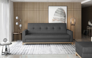 Dotaz na produkt Na splátky ještě dnesSelene je prostorná, klasická pohovka o rozměrech 216 x 87 x 93 cm, která je vytvořena mimořádně stylovým, ale minimalistickým způsobem. Je ideální pro lenošení ve dne i v noci, protože po rozložení pomocí mechanismu click-clack může mít podobu postele o rozměrech 195 x 110 cm. Pohovka má také prostorný úložný prostor na ložní prádlo, který se nachází v nábytkovém boxu. Pokud jde o výjimečnou flexibilitu a měkkost, je třeba zde zmínit pěnu T30, která je odolná vůči nevzhledným promáčknutím. Mezi další výhody tohoto modelu patří: stylové prošívání na opěradle a po stranách nábytku, dřevěné nohy z masivního dřeva, tvarované opěradlo a také dostupnost modelu v mnoha barevných variantách. Selene je výjimečným kusem nábytku na mnoho let. Pokud vám záleží na maximálním pohodlí v kombinaci s funkčností - Selene bude jistě hitem! Látky: Monolith 97