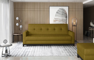Dotaz na produkt Na splátky ještě dnesSelene je prostorná, klasická pohovka o rozměrech 216 x 87 x 93 cm, která je vytvořena mimořádně stylovým, ale minimalistickým způsobem. Je ideální pro lenošení ve dne i v noci, protože po rozložení pomocí mechanismu click-clack může mít podobu postele o rozměrech 195 x 110 cm. Pohovka má také prostorný úložný prostor na ložní prádlo, který se nachází v nábytkovém boxu. Pokud jde o výjimečnou flexibilitu a měkkost, je třeba zde zmínit pěnu T30, která je odolná vůči nevzhledným promáčknutím. Mezi další výhody tohoto modelu patří: stylové prošívání na opěradle a po stranách nábytku, dřevěné nohy z masivního dřeva, tvarované opěradlo a také dostupnost modelu v mnoha barevných variantách. Selene je výjimečným kusem nábytku na mnoho let. Pokud vám záleží na maximálním pohodlí v kombinaci s funkčností - Selene bude jistě hitem! Látka: Monolith 48