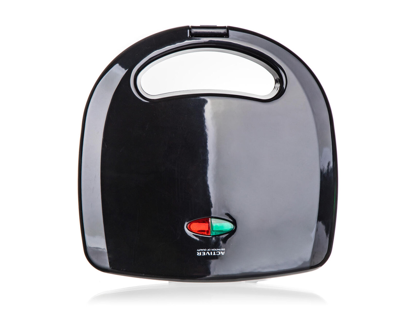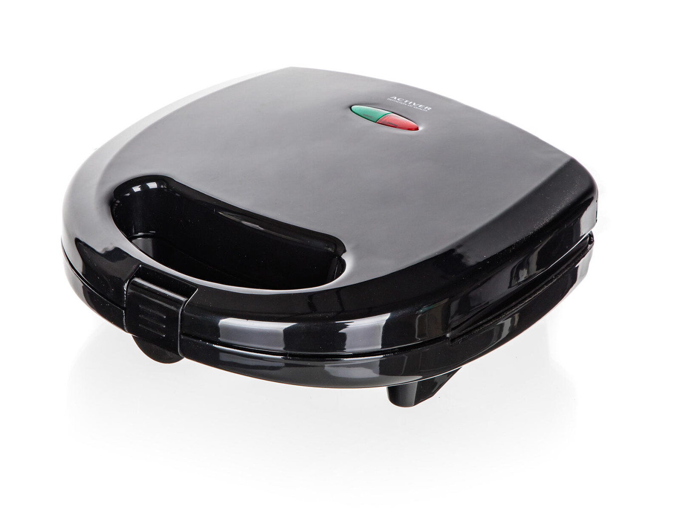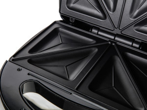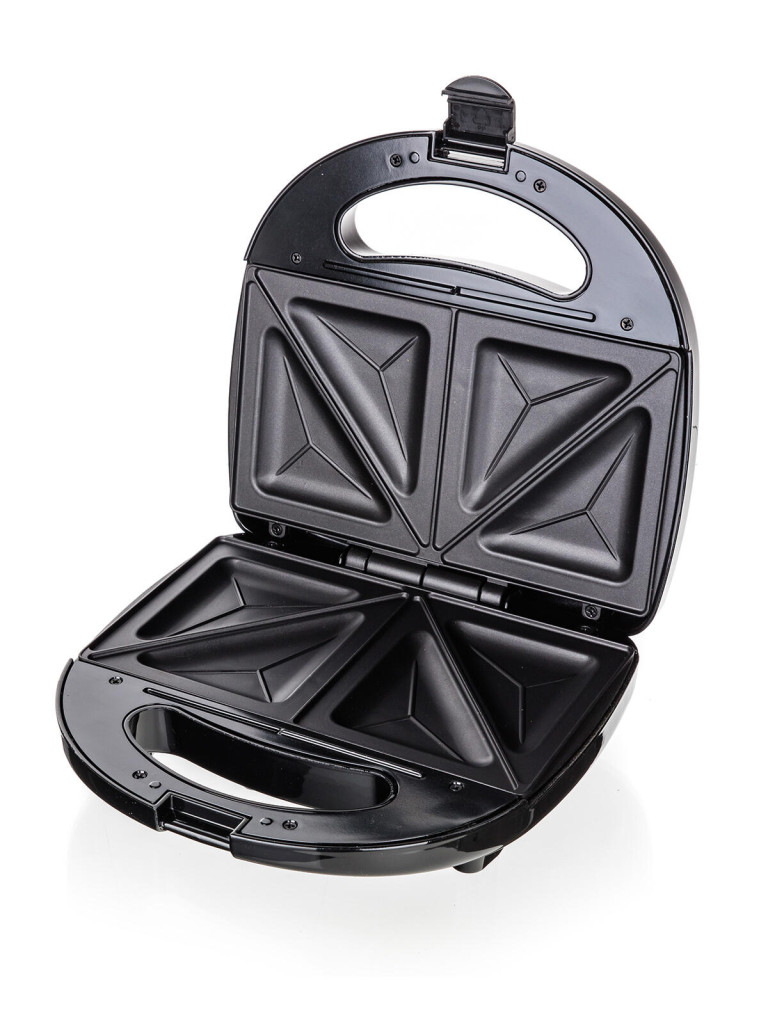 Sendvičovač s příkonem 760 W, v černé barvě, má nepřilnavý povrch, který se snadno čistí.