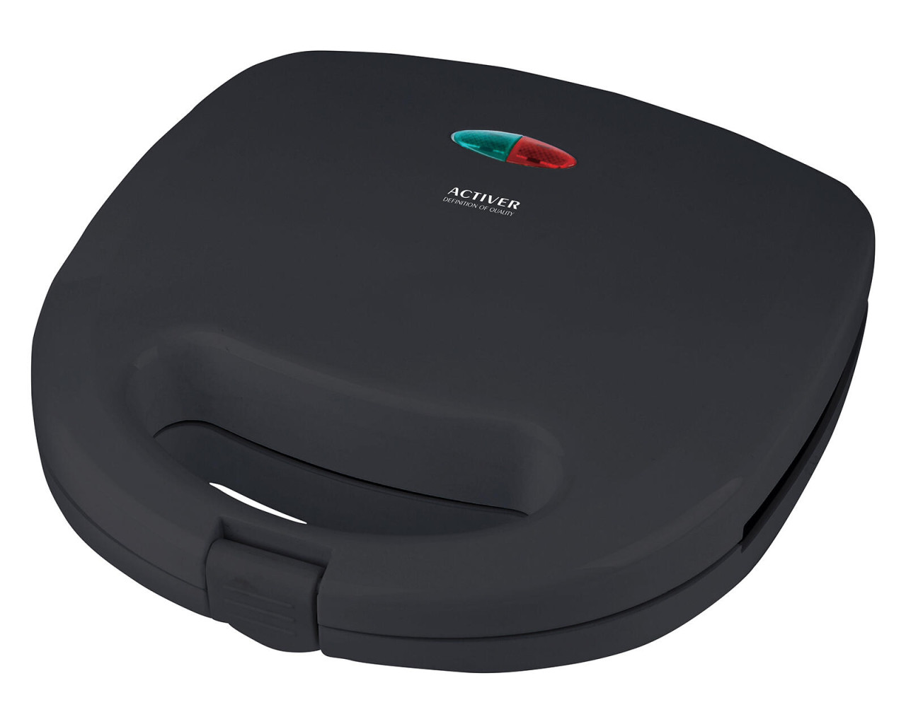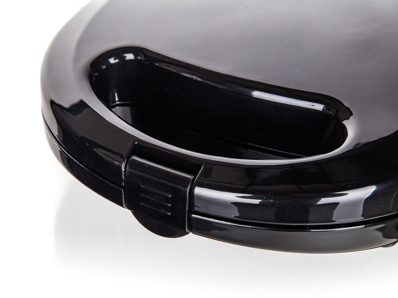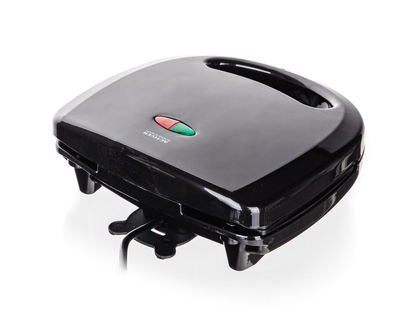 Sendvičovač s příkonem 760 W, v černé barvě, má nepřilnavý povrch, který se snadno čistí.