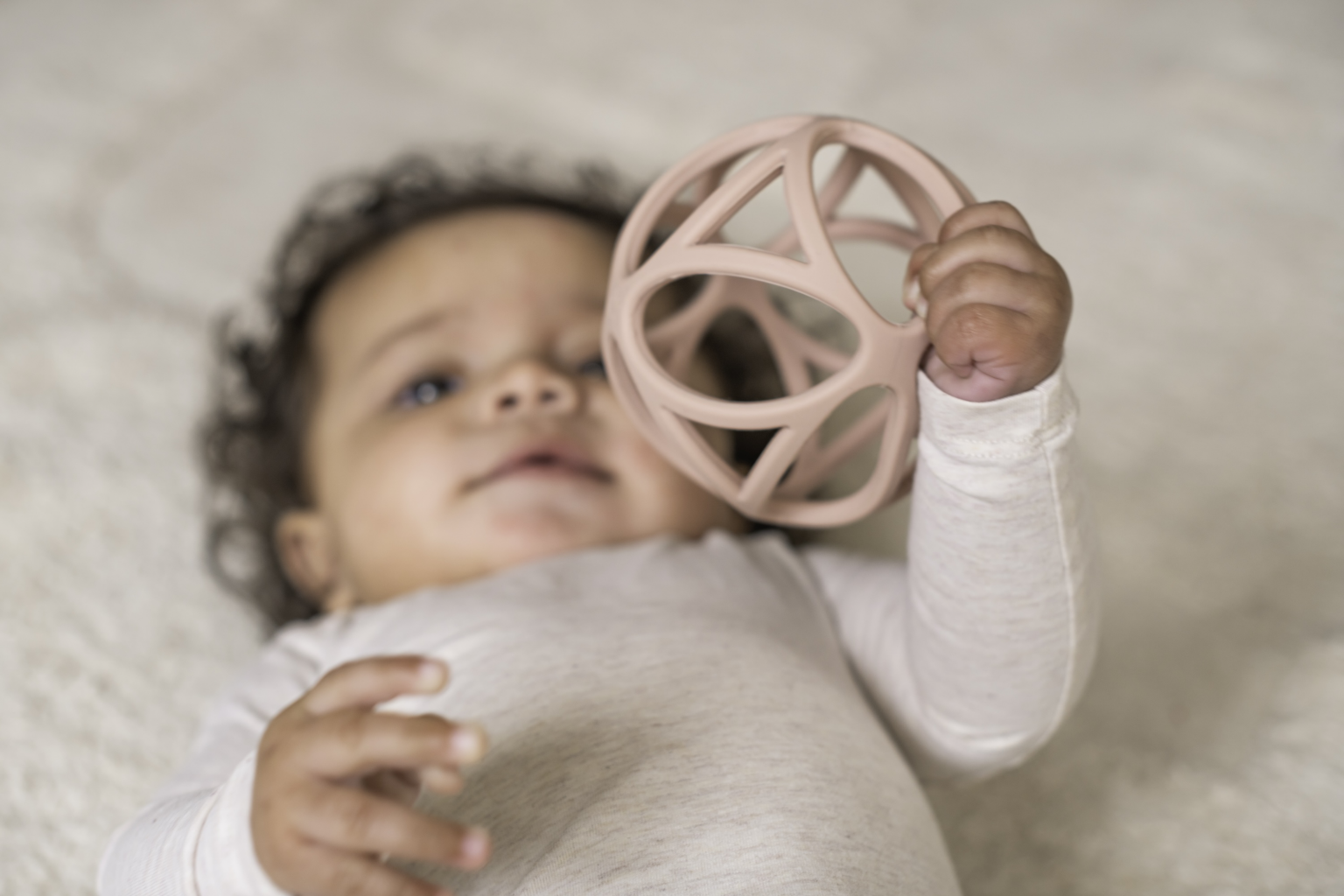 Dotaz na produktLehounký míček z jemného silikonu má tvar pro snadné uchopení dětskými ručičkami. Míček láká dítě ke zkoumání rukama i ústy, slouží tak i jako kousátko, což oceníte při prořezávání prvních zoubků vašeho dítěte.