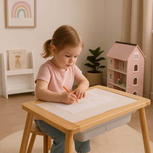 - vývoj a radost dítěte – stůl inspirovaný metodou Montessori podporuje smysly, jemnou motoriku a kreativitu, je prostor pro samostatnou hru a učení prostřednictvím zkušeností, což je klíčové pro správný vývoj předškoláků a studentů