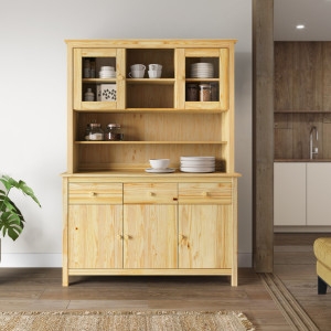 Dotaz na produkt Na splátky ještě dnessestava příborníku TORINO 8062 a nástavce TORINO 8063 materiál masiv borovice, lakované provedení příborník: 3 dveře, 3 zásuvky s kovovými pojezdy nástavec: dvoje prosklená dvířka rozměr příborníku (š/h/v) 129 × 40 × 80 cm rozměr nástavce (š/h/v) 129 × 33 × 100 cm